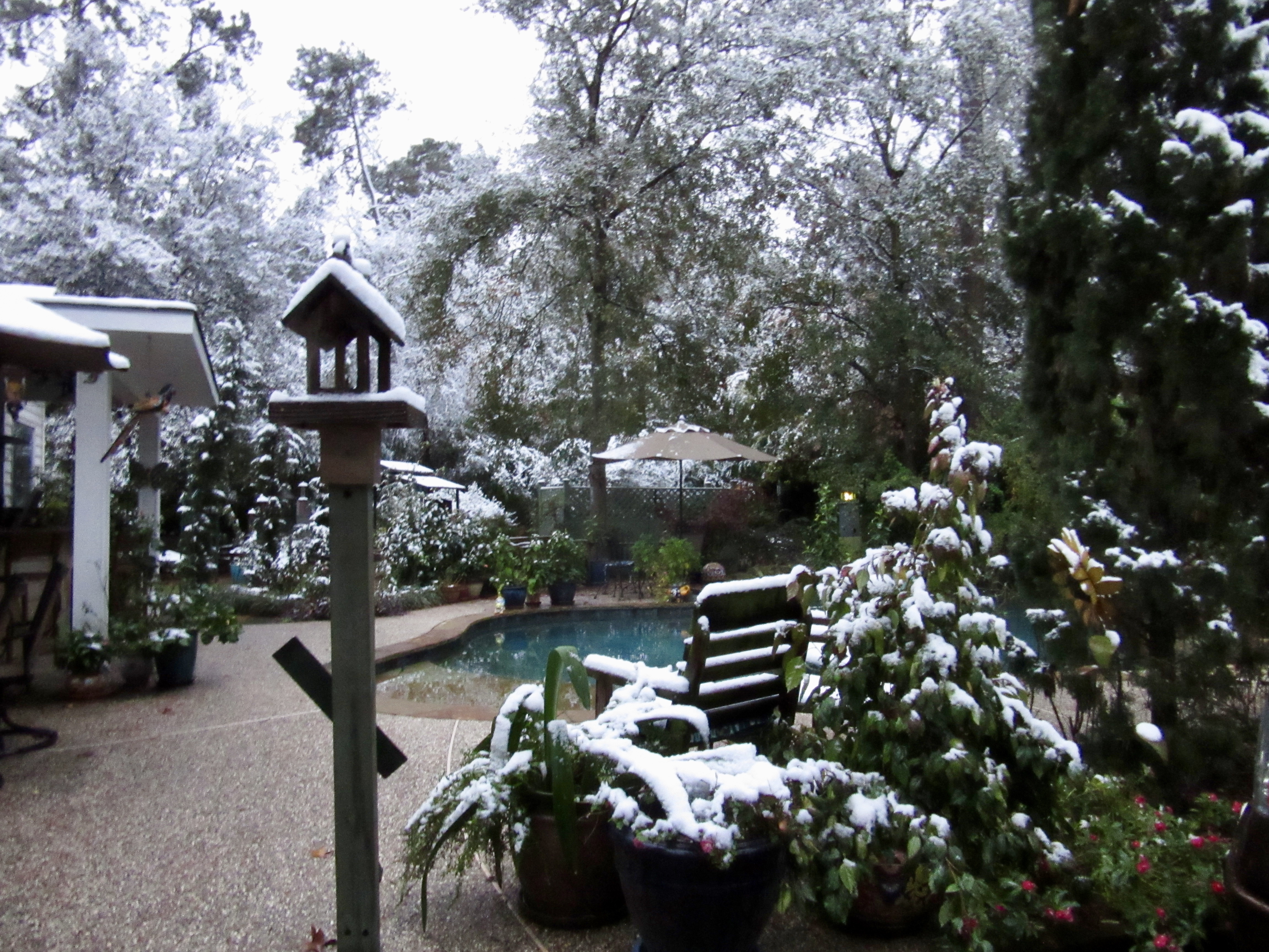 It has been really cold here (cold for Southeast Texas, at least) – dipping into the low 20s at night. Brrrrrr! We even had snow here a couple of weeks ago! Glover Gardens looks like it has been dusted with powdered sugar everywhere.
