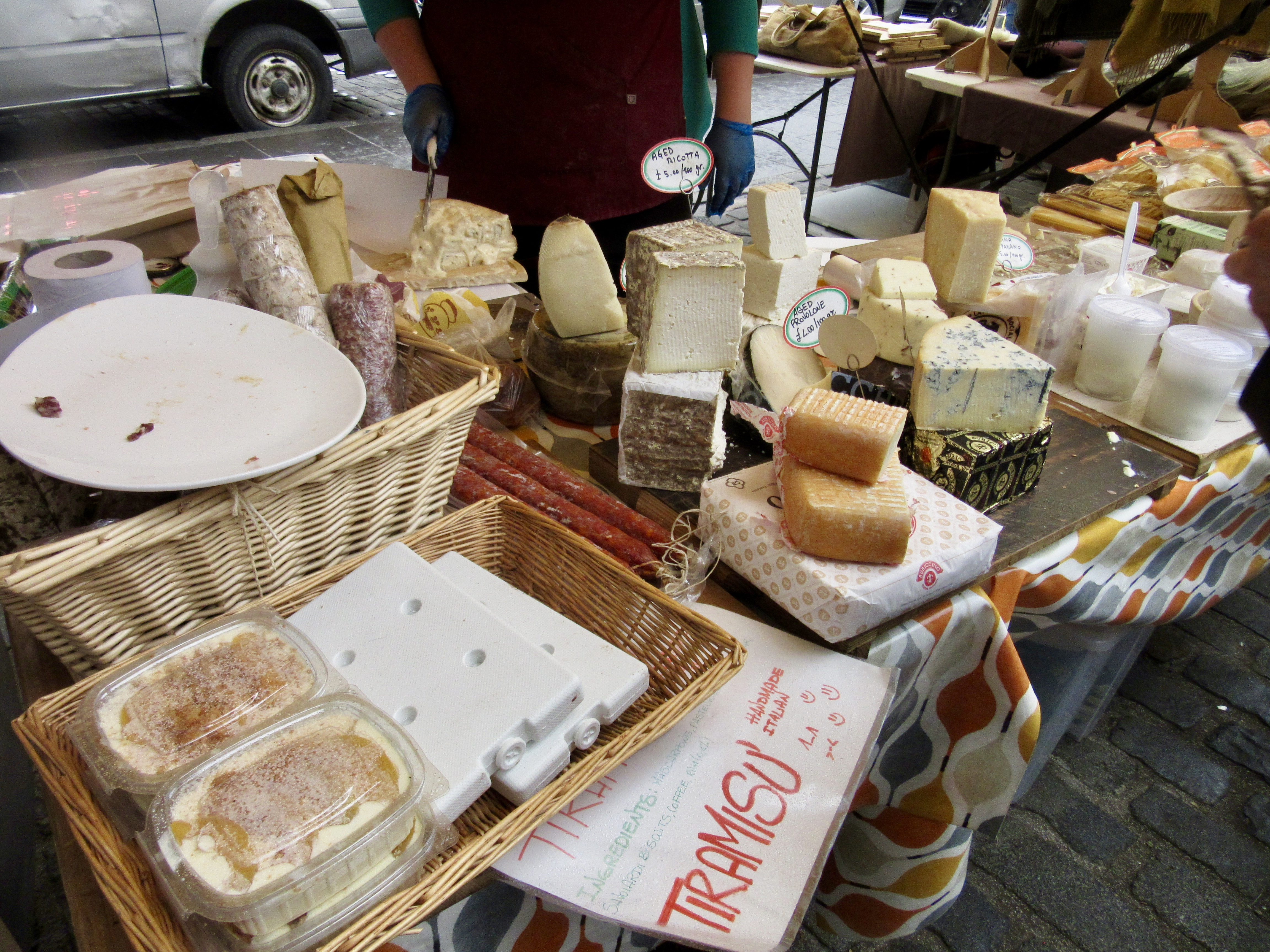 And what a lovely market it was. It had everything: produce, cheese, a bridal couple (he wore a kilt), dogs galore, arepas, paella, olives, breads, leather goods…a plethora of products to peruse while people-watching.