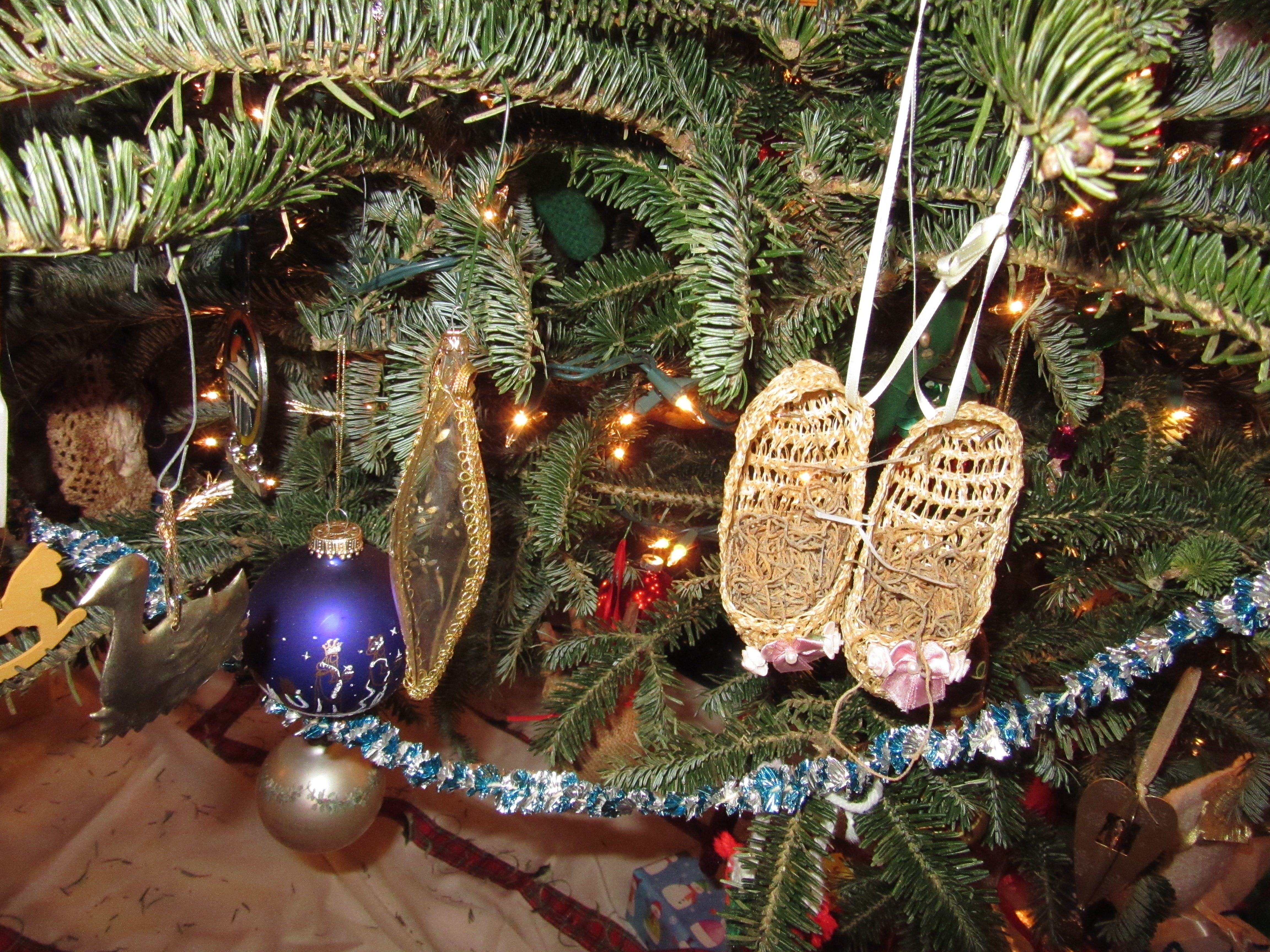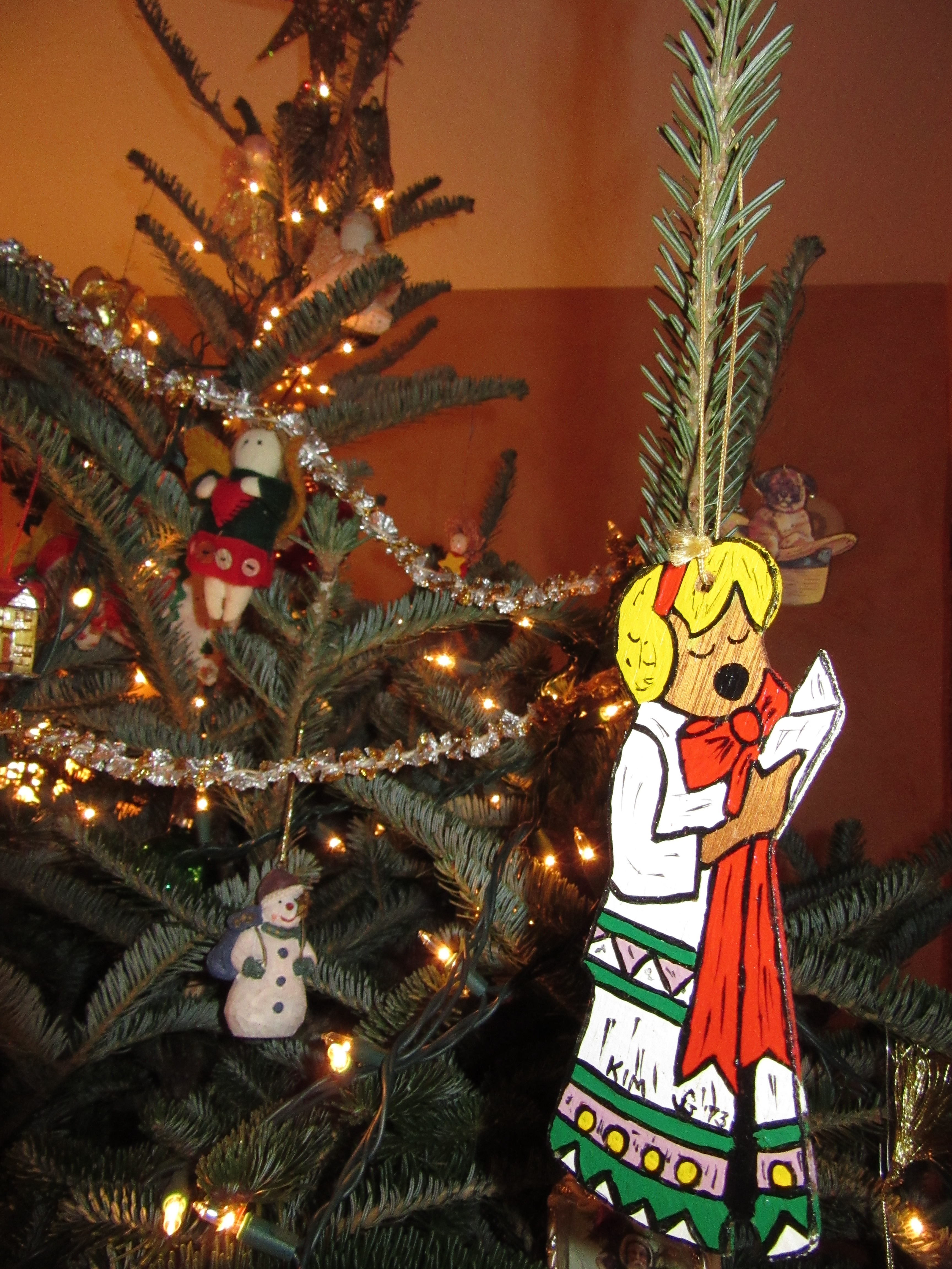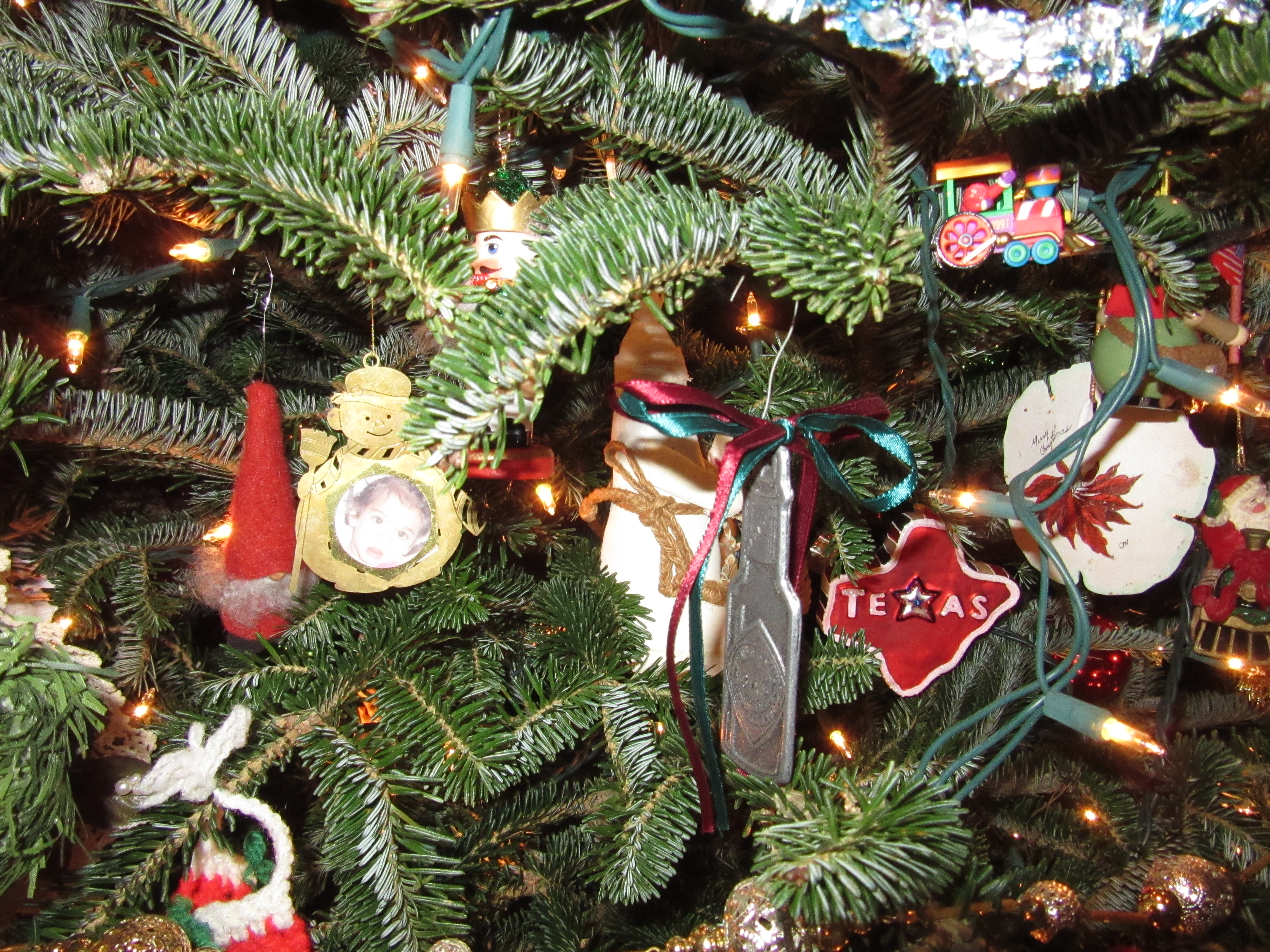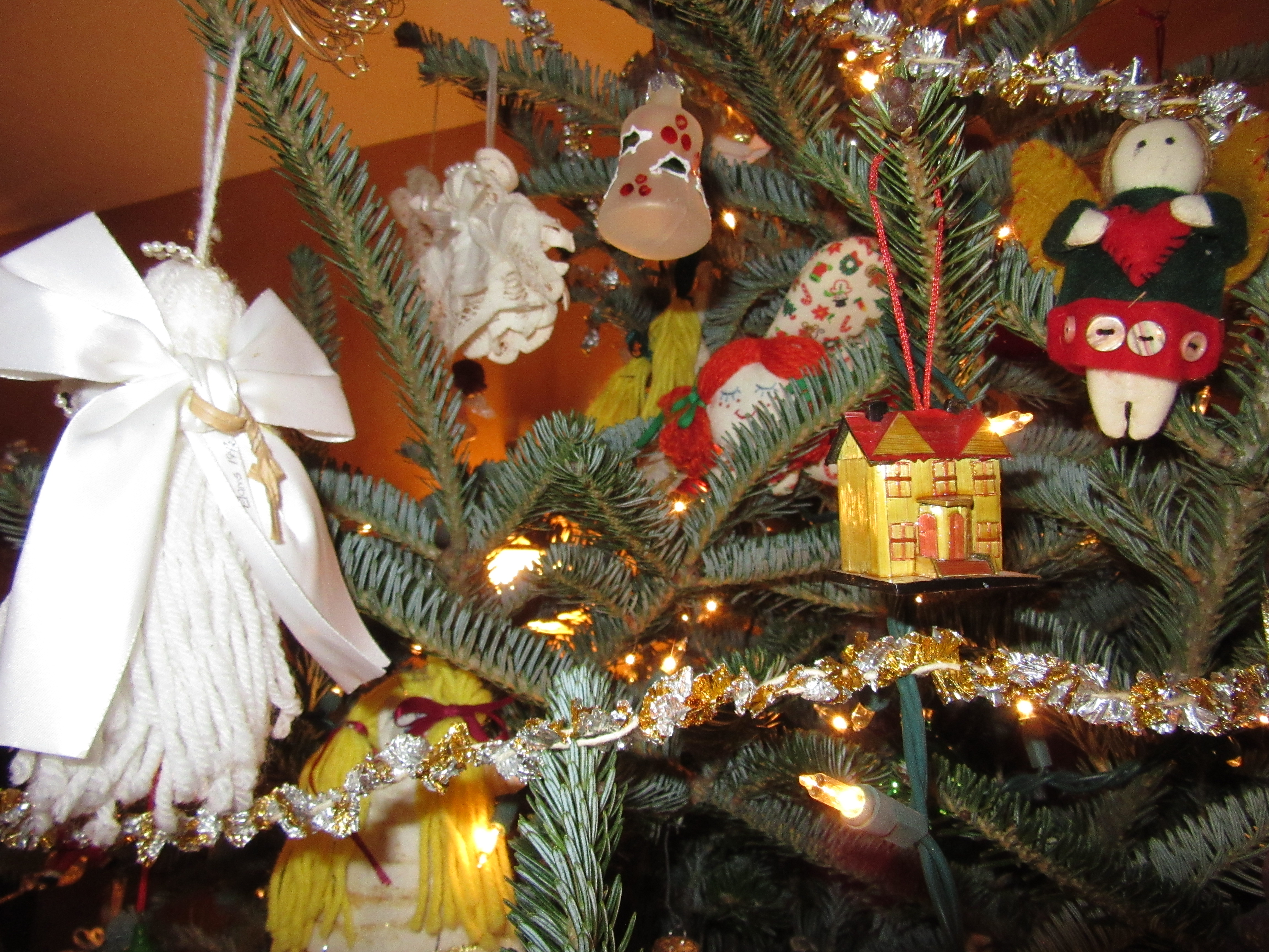I love to decorate the Christmas tree each year and remember the where, when and who of each ornament. We have tinsel from my paternal grandmother’s tree dating back to the 50s, kitschy baubles we picked up to remember family holidays, ornaments from my mother-in-law’s native Germany, handmade treasures from craftsy folks and schoolchildren, and gifts from years and years of stuffed stockings and generous colleagues. Decorating a Christmas tree together and talking about the ornaments is almost like a family’s oral history. I woke up this morning with this haiku about the tree in my head.