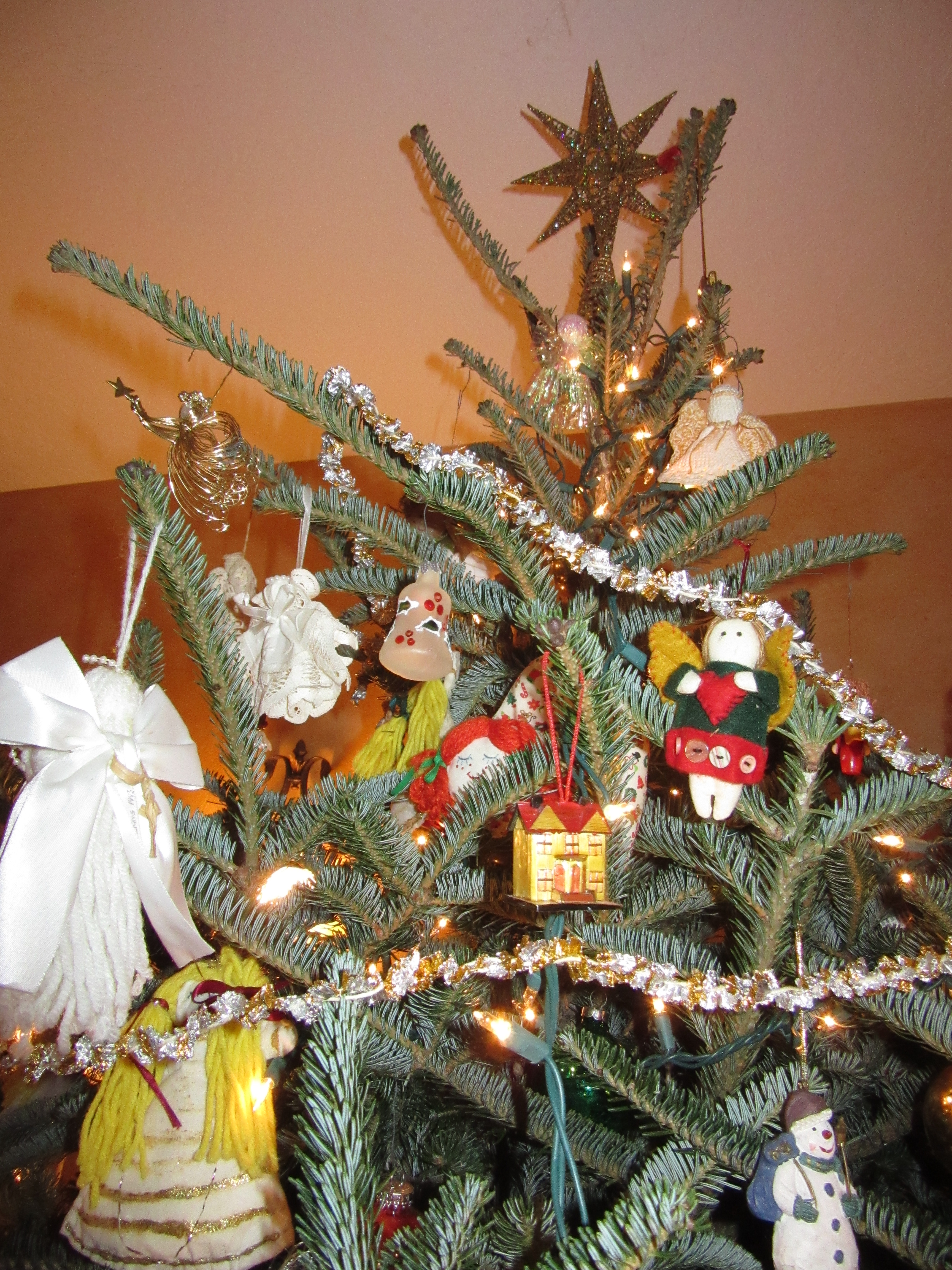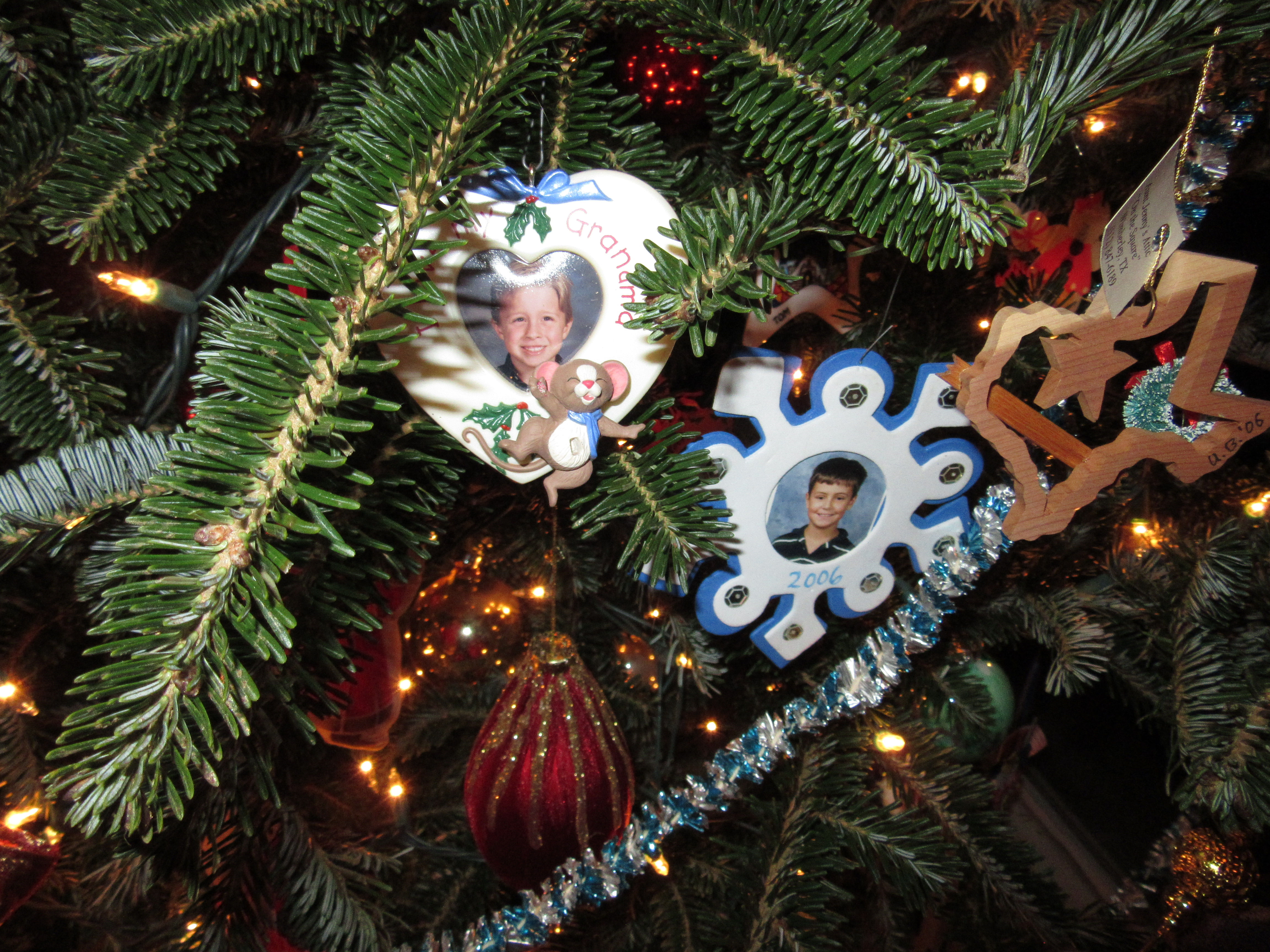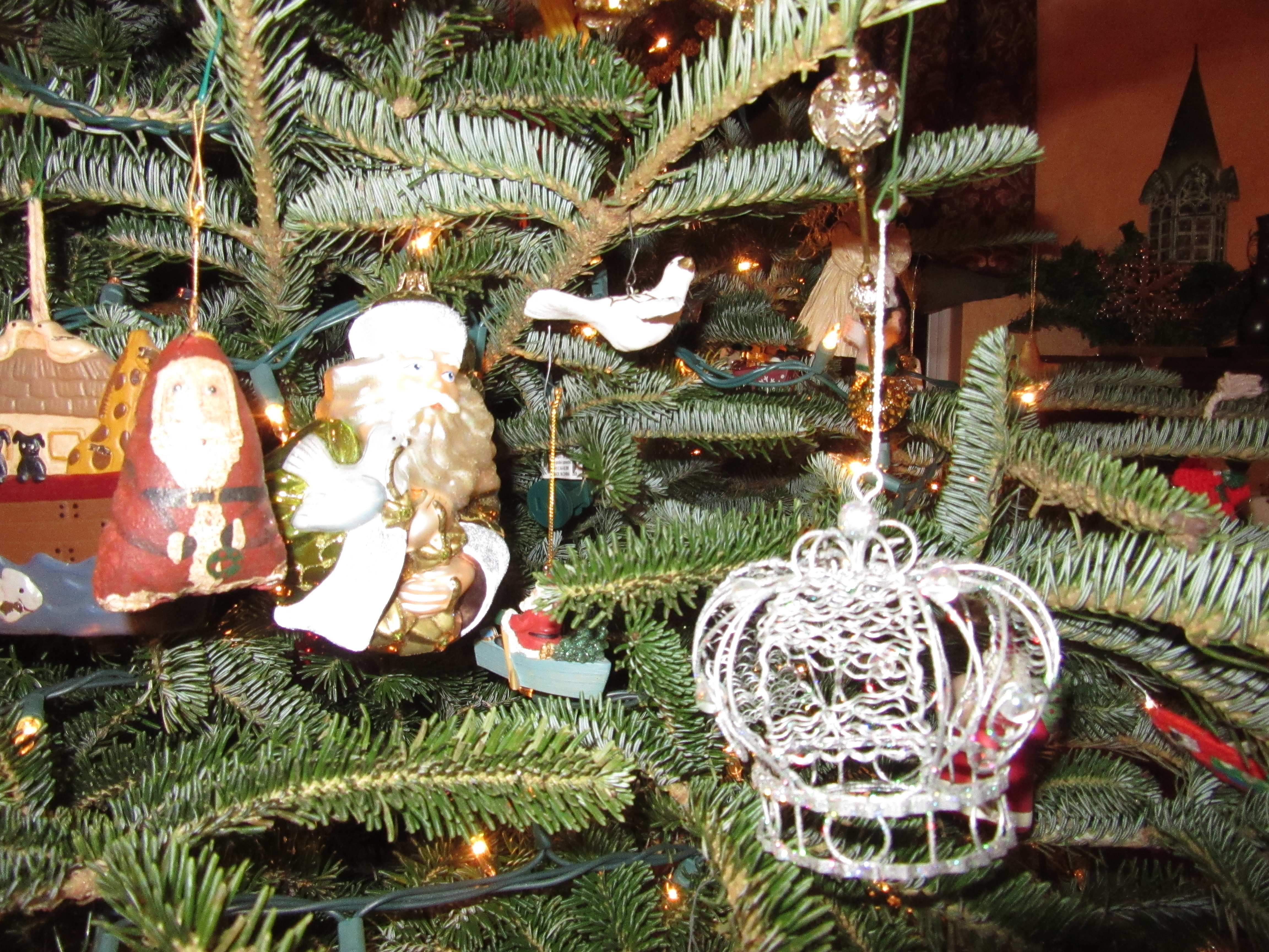 I love to decorate the Christmas tree each year and remember the where, when and who of each ornament. We have tinsel from my paternal grandmother’s tree dating back to the 50s, kitschy baubles we picked up to remember family holidays, ornaments from my mother-in-law’s native Germany, handmade treasures from craftsy folks and schoolchildren, and gifts from years and years of stuffed stockings and generous colleagues. Decorating a Christmas tree together and talking about the ornaments is almost like a family’s oral history. I woke up this morning with this haiku about the tree in my head.