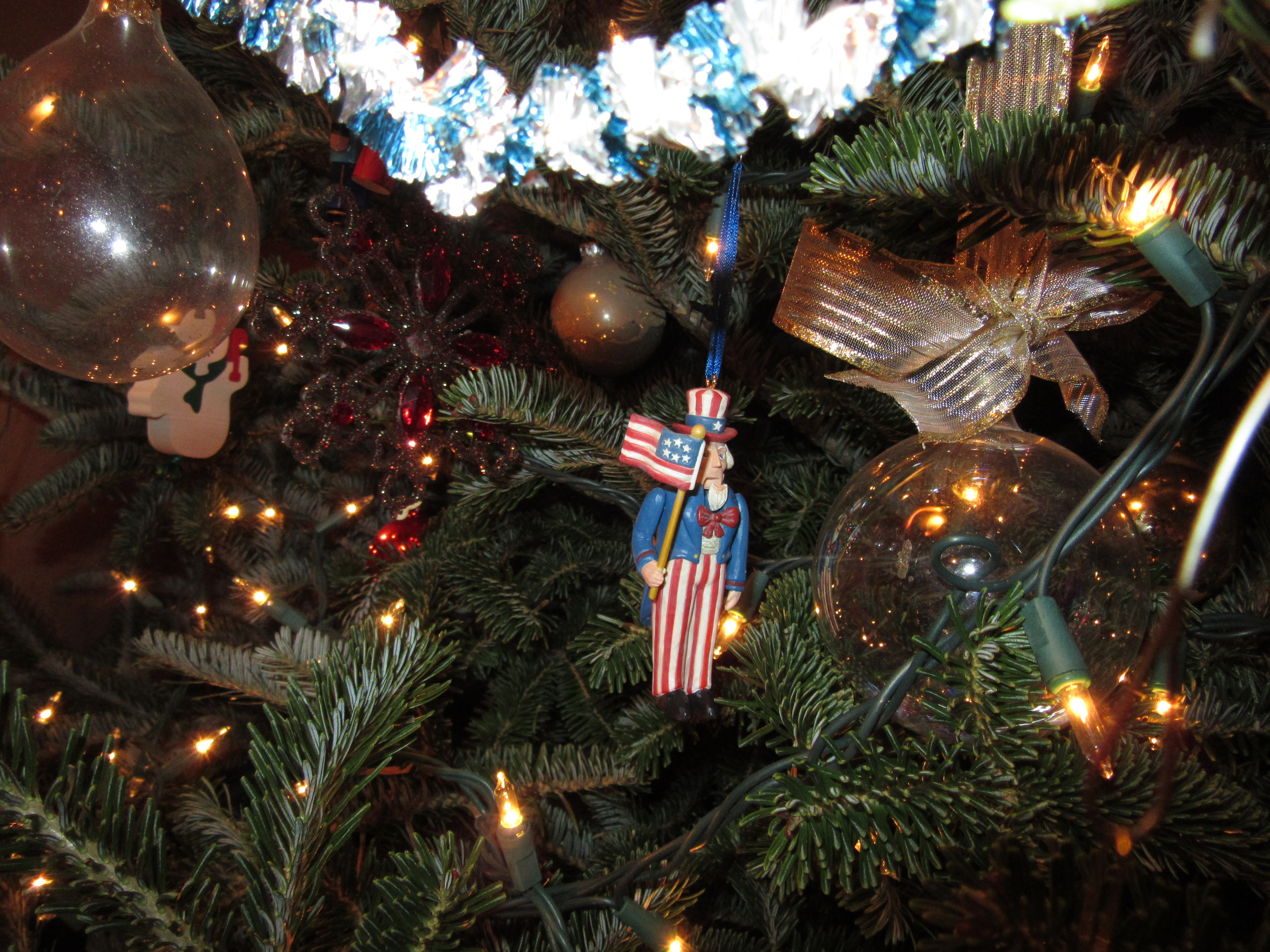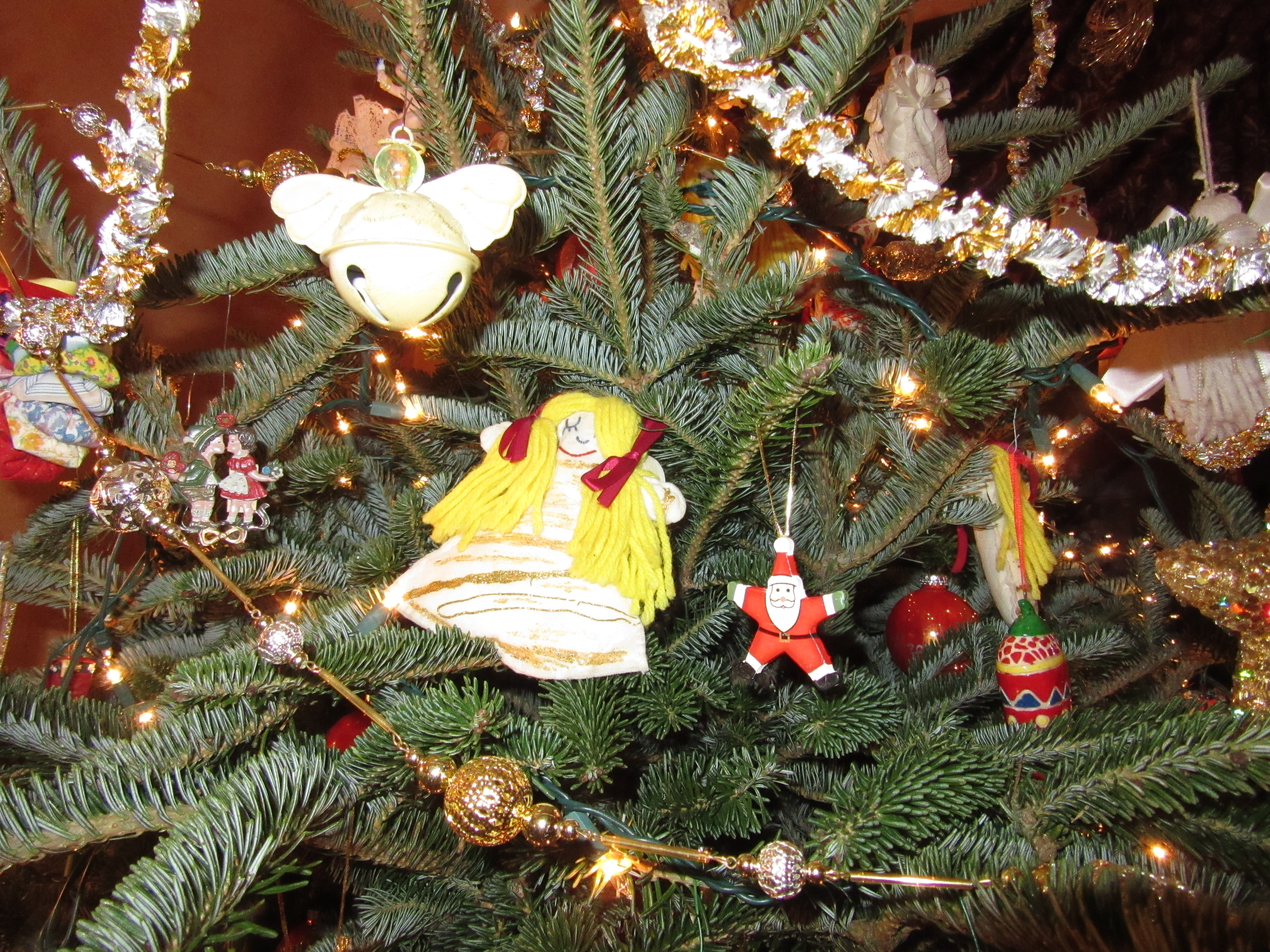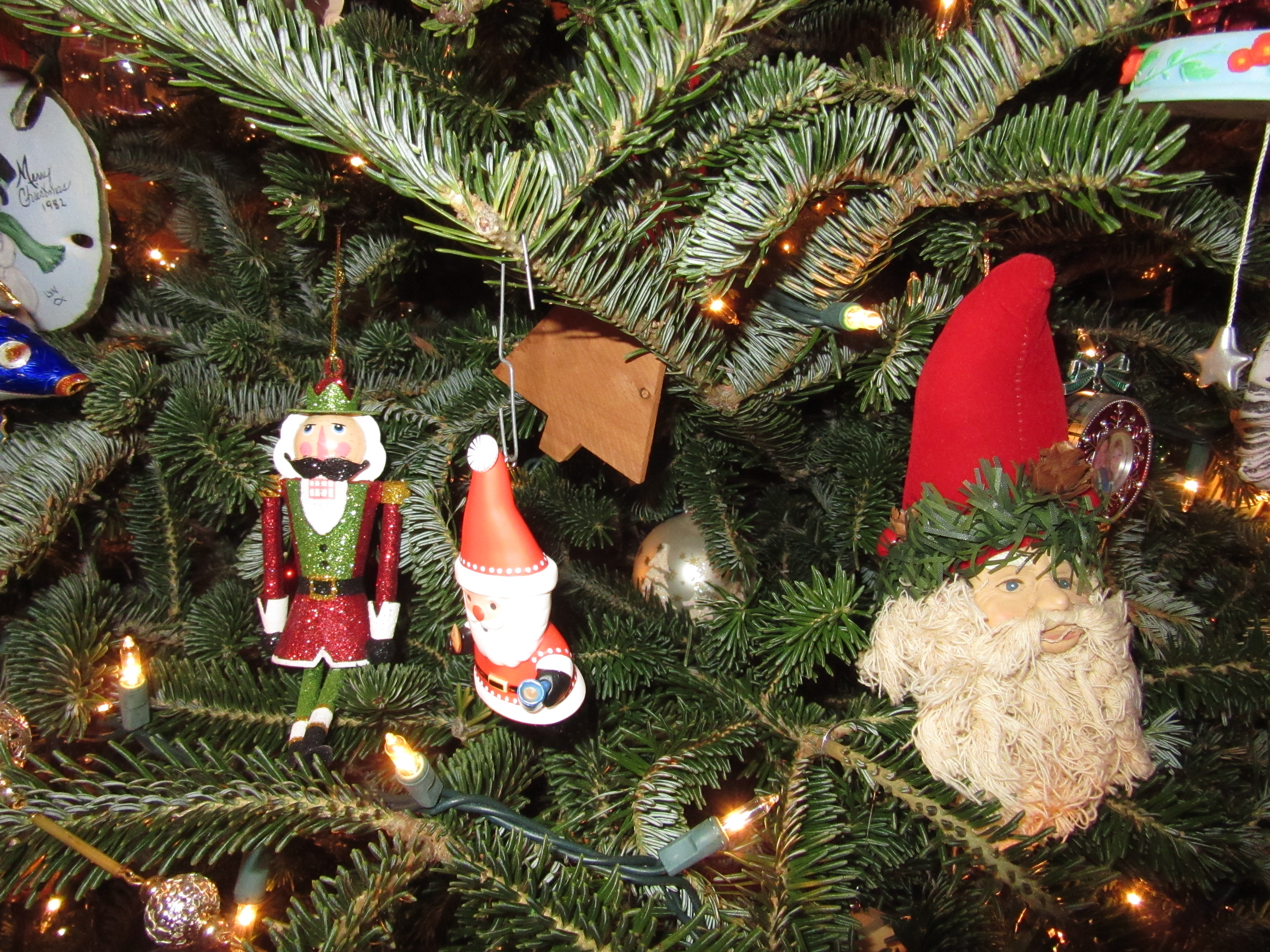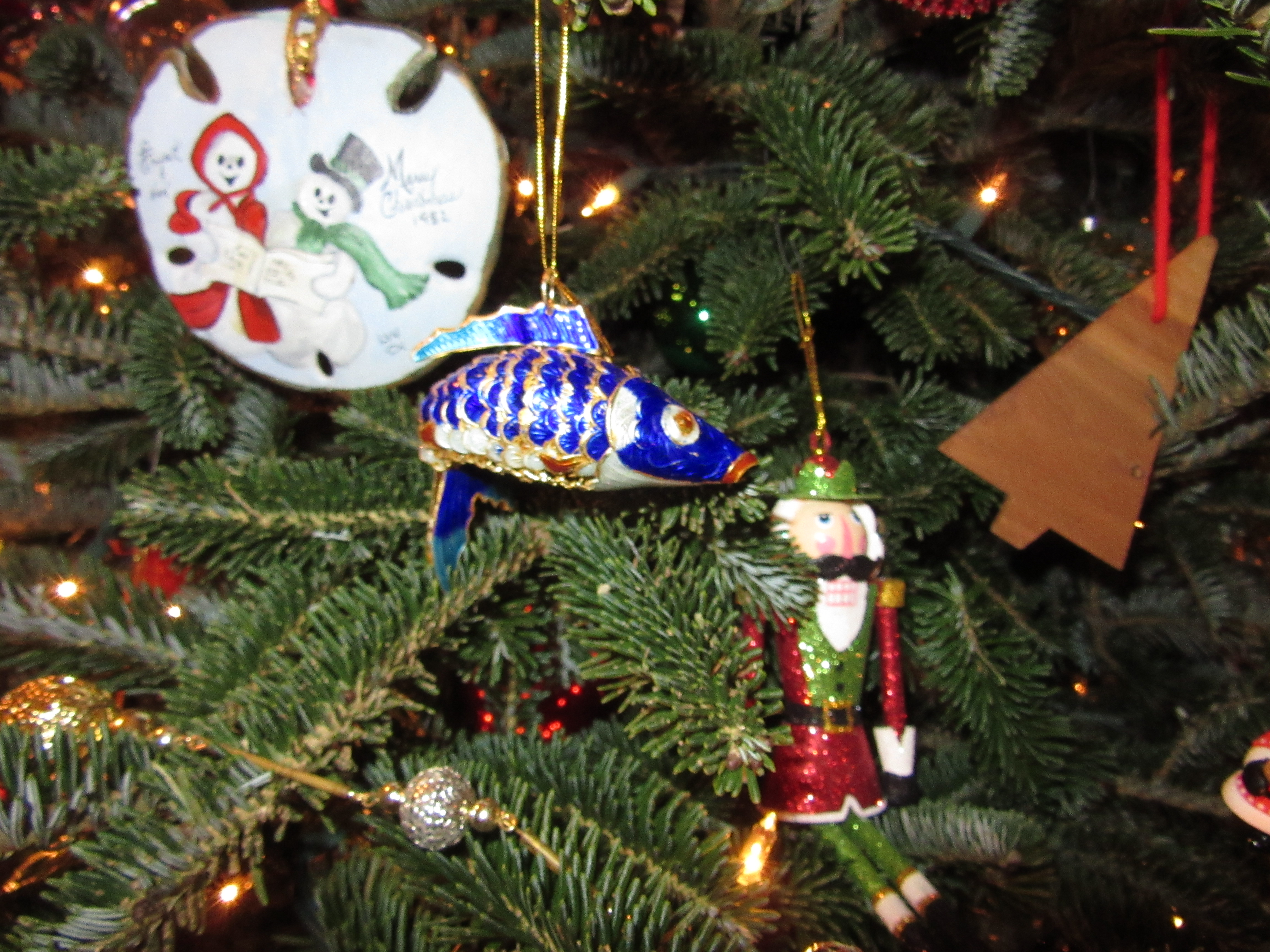 I love to decorate the Christmas tree each year and remember the where, when and who of each ornament. We have tinsel from my paternal grandmother’s tree dating back to the 50s, kitschy baubles we picked up to remember family holidays, ornaments from my mother-in-law’s native Germany, handmade treasures from craftsy folks and schoolchildren, and gifts from years and years of stuffed stockings and generous colleagues. Decorating a Christmas tree together and talking about the ornaments is almost like a family’s oral history. I woke up this morning with this haiku about the tree in my head.