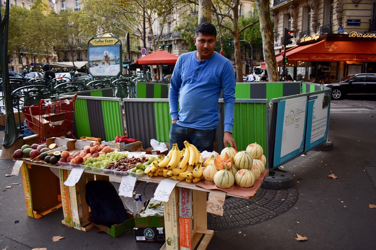 There was a big fruit and vegetable market, and a small one. The vendor at the small one was very friendly and posed for me.