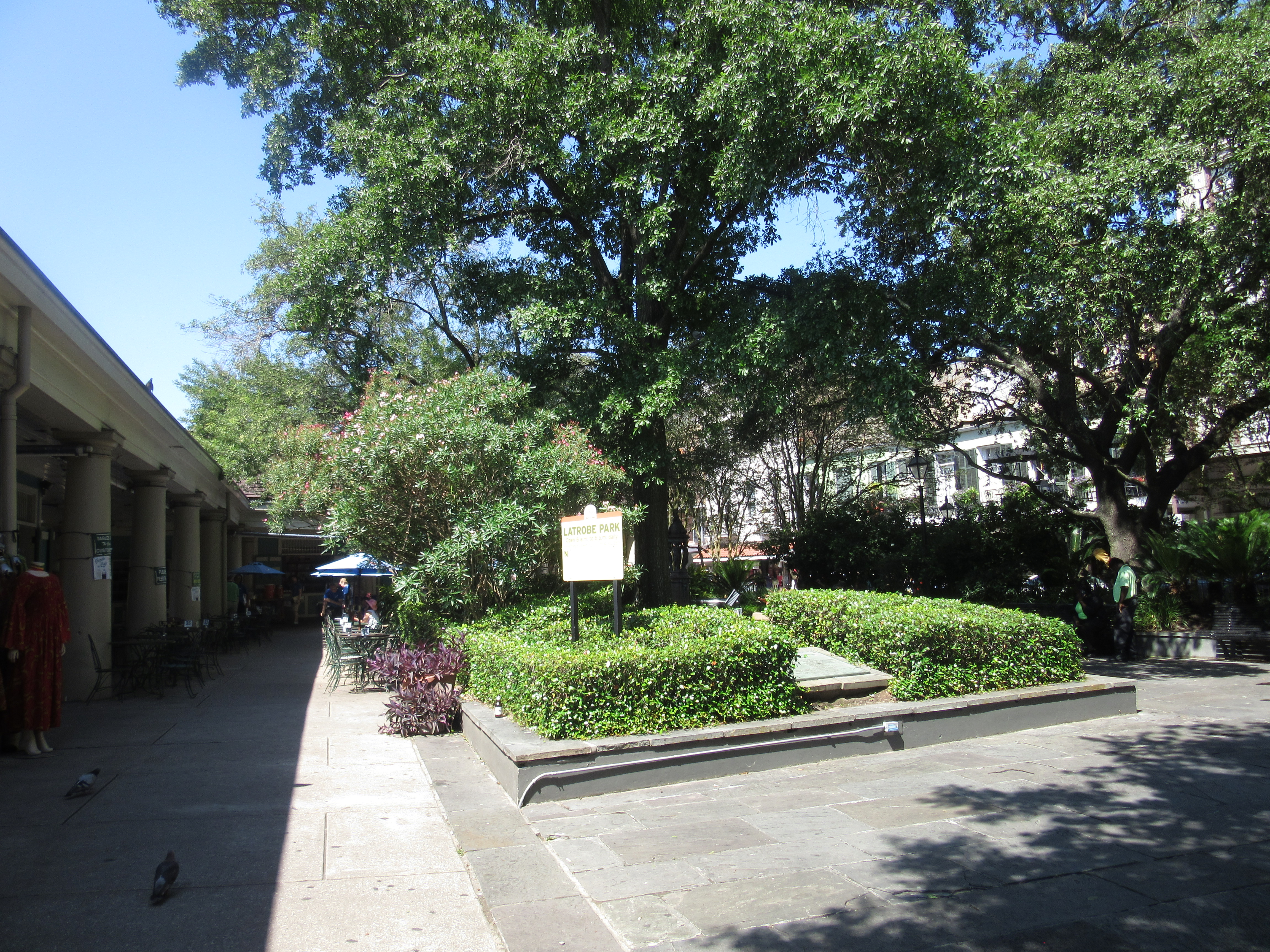 - Go to the French Market and shop, shop, shop. It is seedy, tacky, touristy and full of imports like $7 sunglasses, while also offering cool local art, jewelry and other handmade items at reasonable prices. There are local foodstuffs, and some funky junk. I usually pick up a stocking stuffer or two while I’m at the market. Sometimes there’s live music, and on Wednesdays, there’s a farmer’s market. Green space, trees and tiny parks can be found in the 6 blocks of shopping, too.